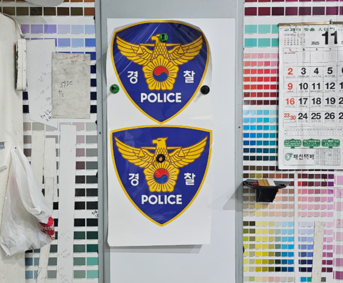 출력물을 자석 전면(PVC sheet)에 점착시켜 후면의 자력을 이용 차량의 표면에 붙여 사용합니다.