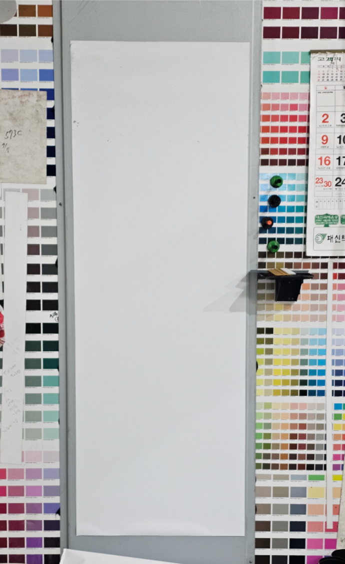 필름 오버 라미네이팅(80㎛)을 거친 후, 자석 원단에 합지 하여 제작 합니다.